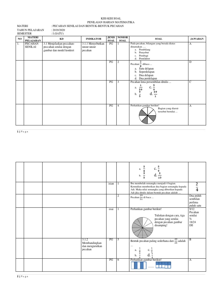 Jika anda membutuhkan kelas 4 matematika materi pecahan senilai berikut anda dapat mendownloadnya melalui laman ini.