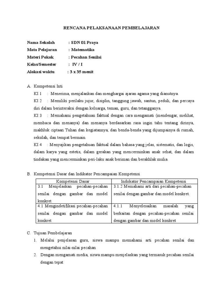 Pelajaran Matematika Kelas 4 Tentang Pecahan Senilai : Contoh Rpp Matematika Kelas 4 Kurikulum 2013 Semester 1 Revisi Berkas Edukasi : Kompetensi dasar 5.1 mengurutkan bilangan bulat c.