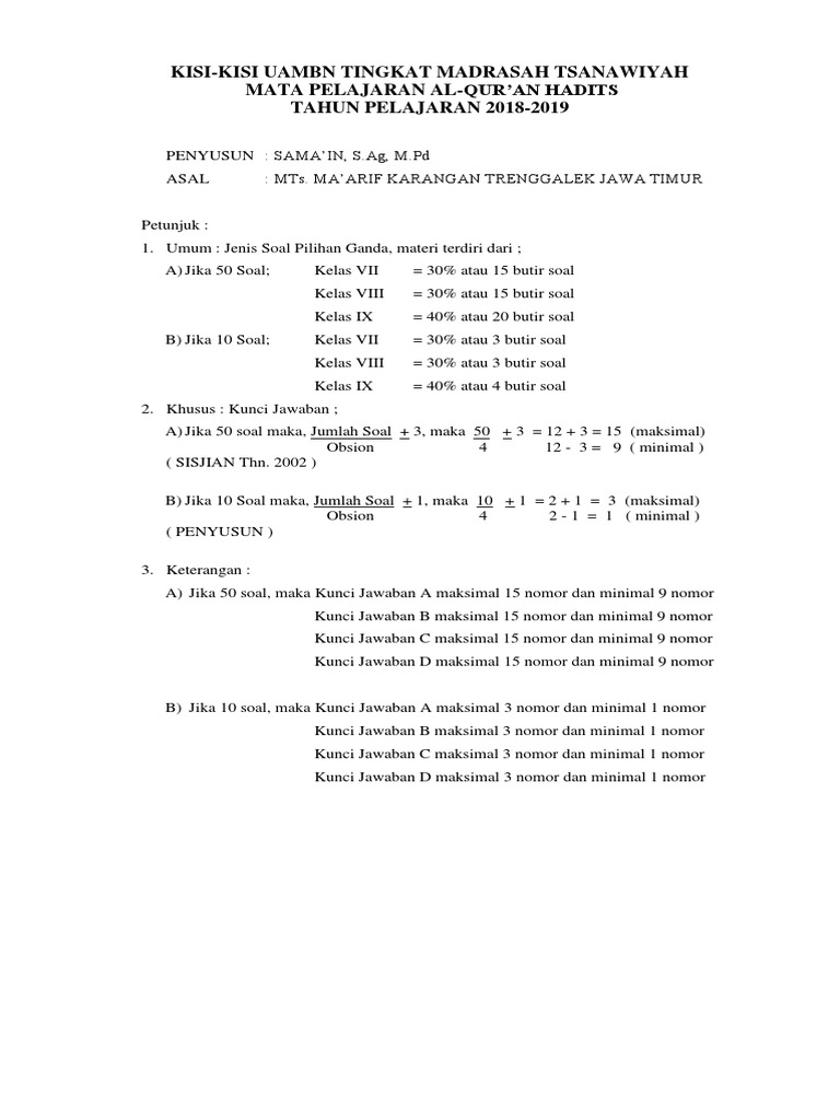Download Kisi Kisi Usbn Pai Dan Bahasa Arab Mi Mts Ma 2020 from rukim.id We did not find results for: Maybe you would like to learn more about one of these? Soal uambn bahasa arab mts 2018 dan kunci jawabannya. Check spelling or type a new query.